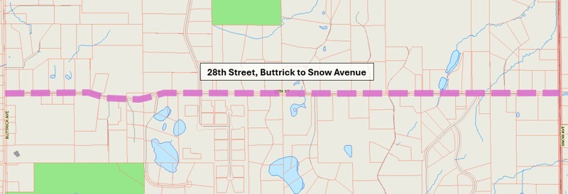 Scope of Work: Cold milling 28th Street to a depth of 2” and paving back with a fiber reinforced HMA mix followed by permanent pavement markings. This project will be completed while maintaining two-way traffic for the duration of project.