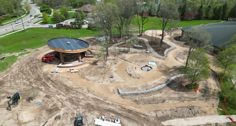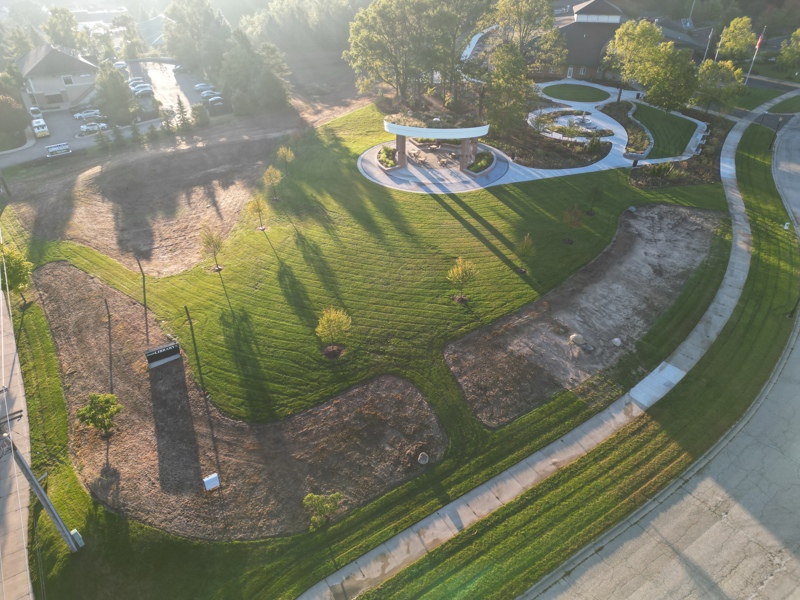 - Phase Two expanded the sidewalk beyond the woods and added more green space for gathering or lawn games and a pavilion.