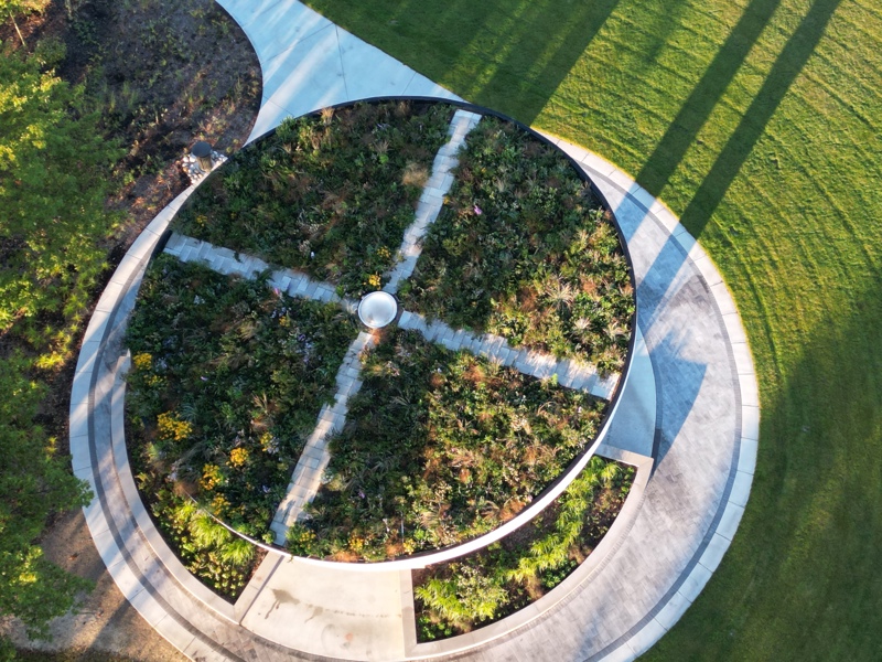 - Phase Three extended the sidewalk entirely around the building and created additional native plant areas and smaller tabled spaces for eating, studying, and socializing.